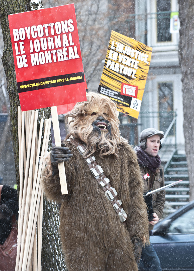 Des milliers de personnes ont bravé le froid pour défiler dans les rues de Montréal samedi afin de protester contre le lock-out au Journal de Montréal, qui perdure depuis bientôt deux ans.Les manifestants se sont réunis vers midi au parc Lafontaine avant d’entreprendre, au son des tambours, la grande marche de la solidarité vers le Journal de Montréal.